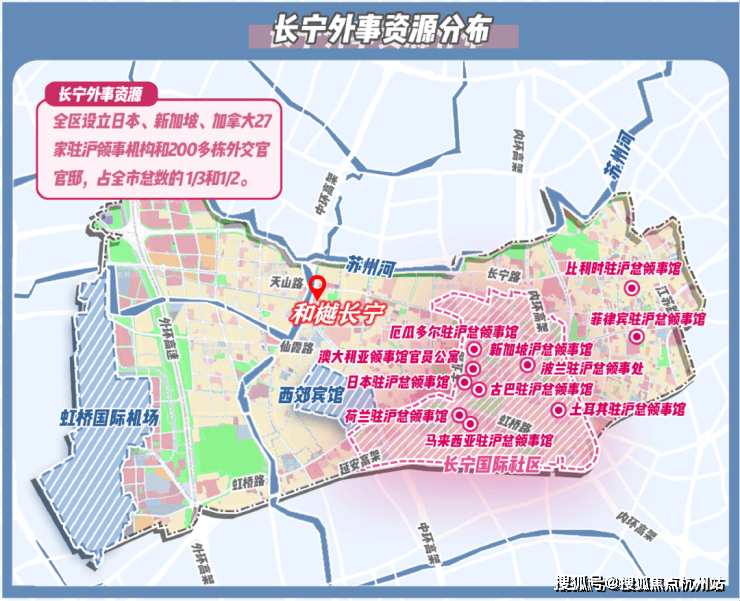 “外事客厅”的独一份定位,离不开长宁独一份的国际交通枢纽优势。作为全上海仅有与虹桥机场、高铁站“双枢纽”直接接壤的城区,其核心区域通过轨道交通、快速路网构建起“15分钟国际通勤圈”。