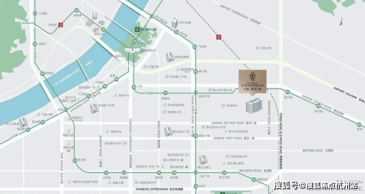路网:紧邻通城高架、空港高架、东湖高架、机场城市大道,自驾15分钟可达钱江新城、滨江互联网小镇、萧山老城商圈。