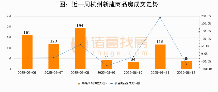 【杭州成交日报】08月12日新房成交38套、二手房81套;涨价房源23套