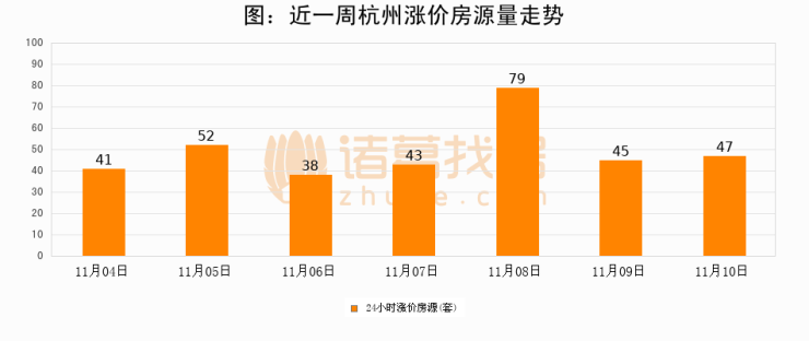 根据诸葛找房数据显示,杭州24小时涨价房源量为47套,较11月09日增加2套,环比上涨4.4%。与此同时,涨价房源占比小幅扩大,业主信心有所提升。
