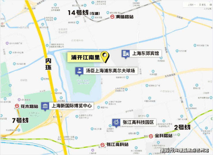 🚇项目交通: 浦开江南里紧邻龙东高架,临近内环和中环,直线距离9号线蓝天路站约2公里、2号线张江高科站约1.3公里,出行便利。