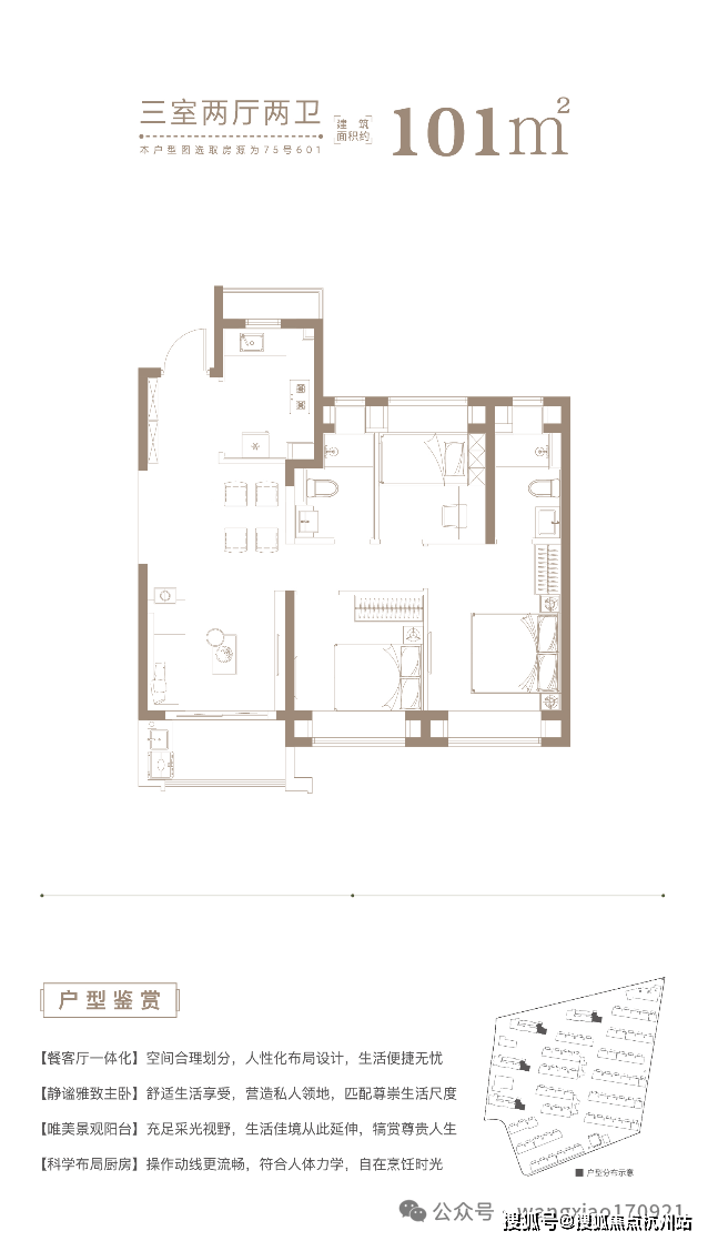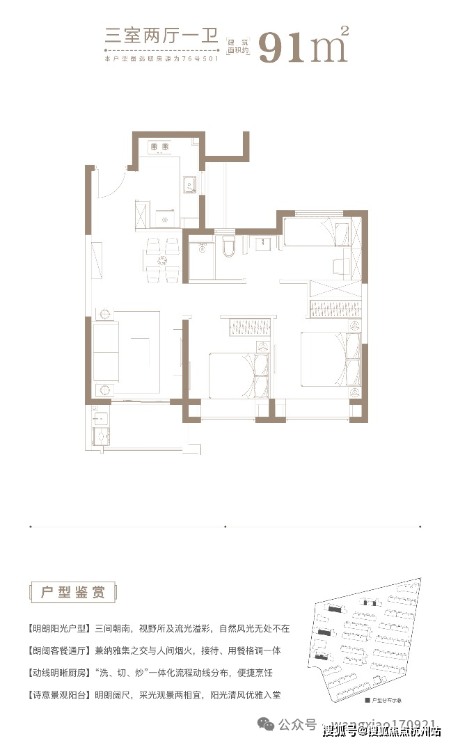 -高层户型:三开间朝南,采光充沛;主卧套房设计,私密奢阔;全卧室配备飘窗,拓展生活视野;厨房预留大尺寸冰箱位,动线合理;双卫布局,避免“早高峰”困扰,动静分区科学,契合精英家庭生活需求。