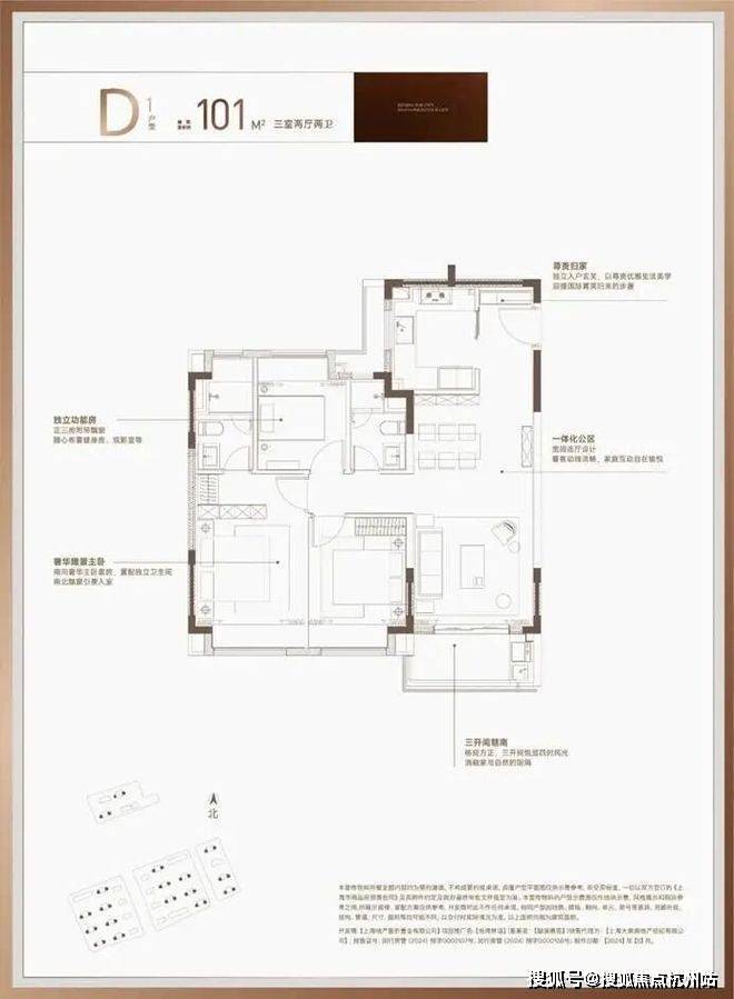 以主力建面约101㎡3房2卫户型为例,得房率高达约80-81%实际使用空间高达约80-82㎡ ,甚至超过了市面上部分洋房产品。
