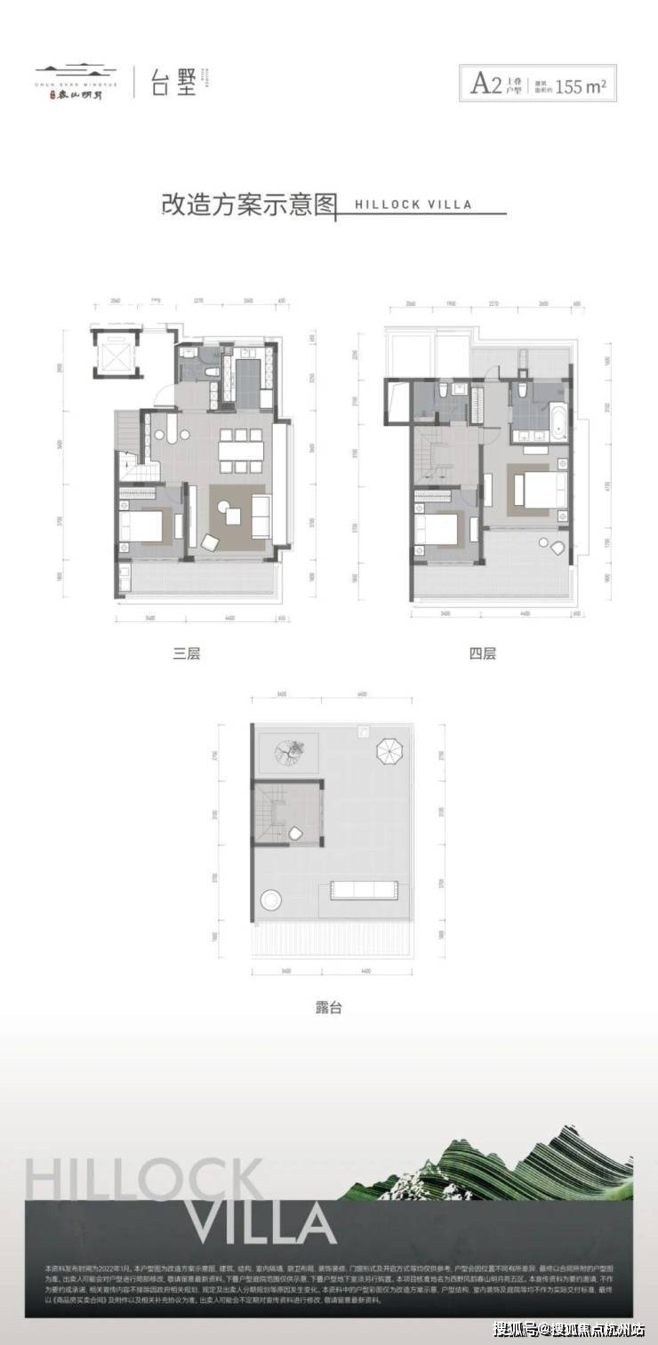 以约155㎡上叠为例,3楼有约14㎡宽景阳台,4楼南面是约22㎡大露台,北面有近8㎡小露台。屋顶还有个带“光盒书房”的星空露台,面积约60㎡。 阳台露台加起来,总面积超100㎡ !
