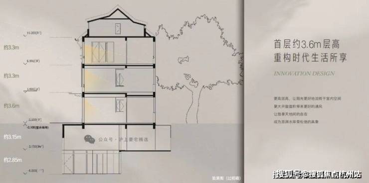 约3.6m首层层高,阔尺采光面。