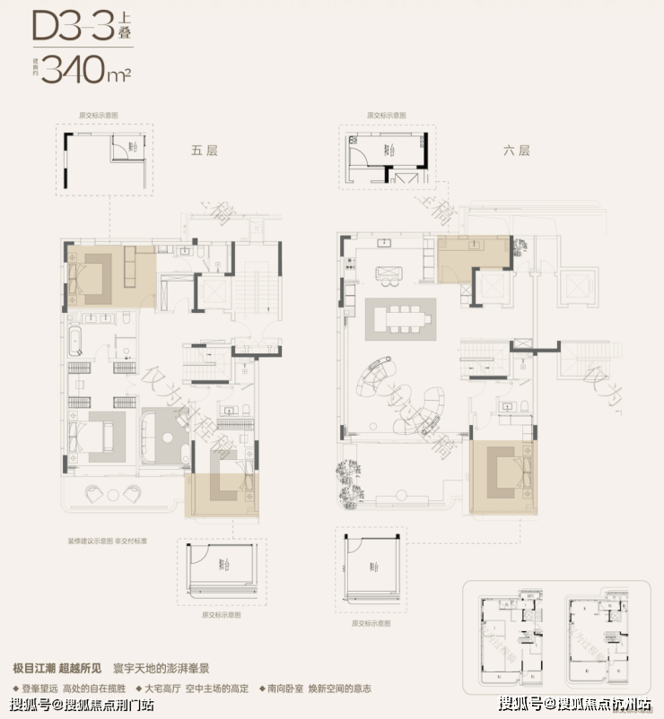 ☝天澜传序府建面约340方上叠户型效果图