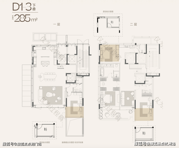 ☝天澜传序府建面约285方下叠户型效果图