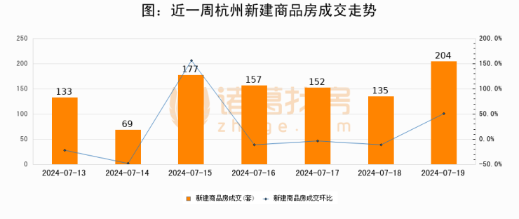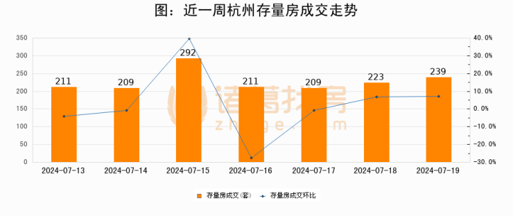 【杭州成交日报】07月19日新房成交204套、二手房239套;涨价房源75套