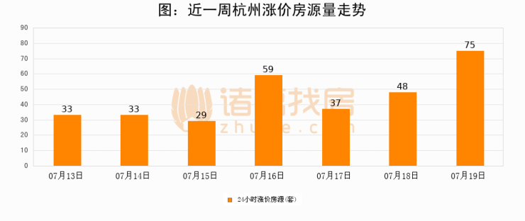 根据诸葛找房数据显示,杭州24小时涨价房源量为75套,较07月18日增加27套,环比上涨56.2%。与此同时,涨价房源占比小幅扩大,业主信心有所提升。