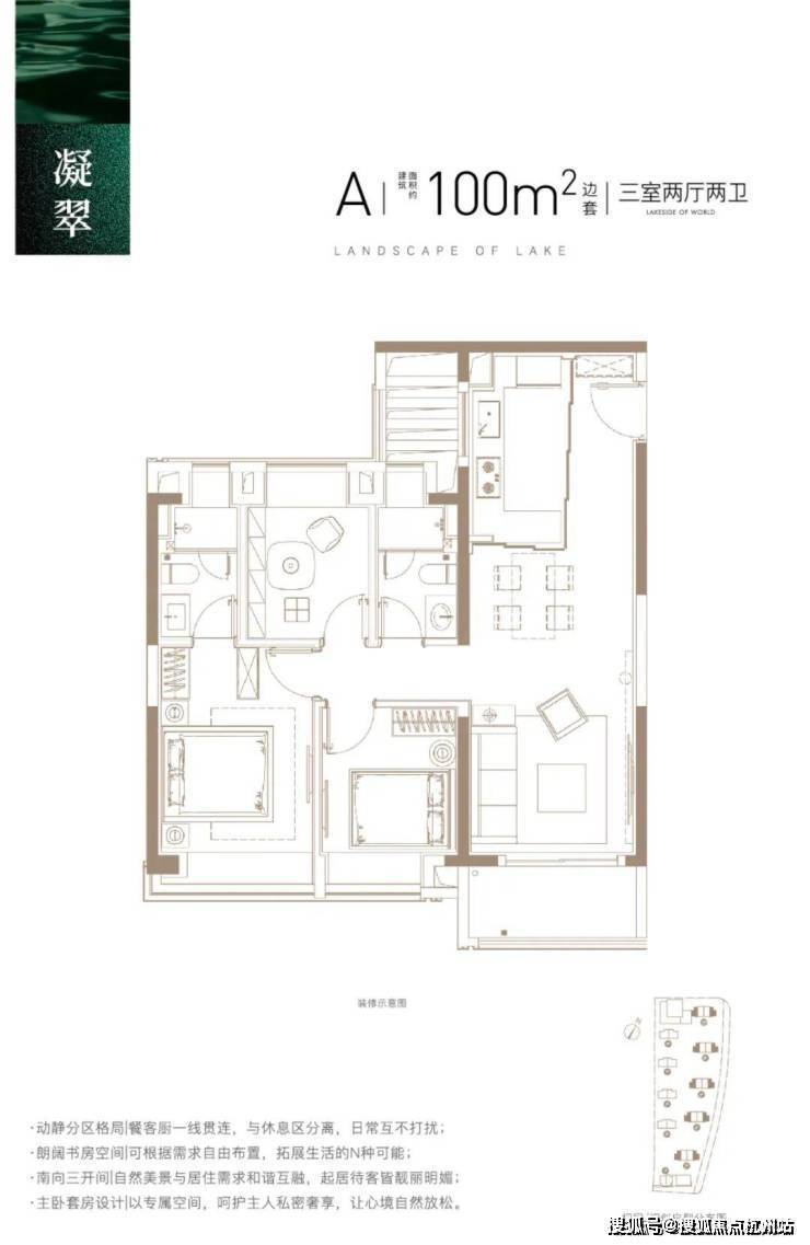 建面约100㎡3房2厅2卫,功能性和尺度感完美结合的3房户型。