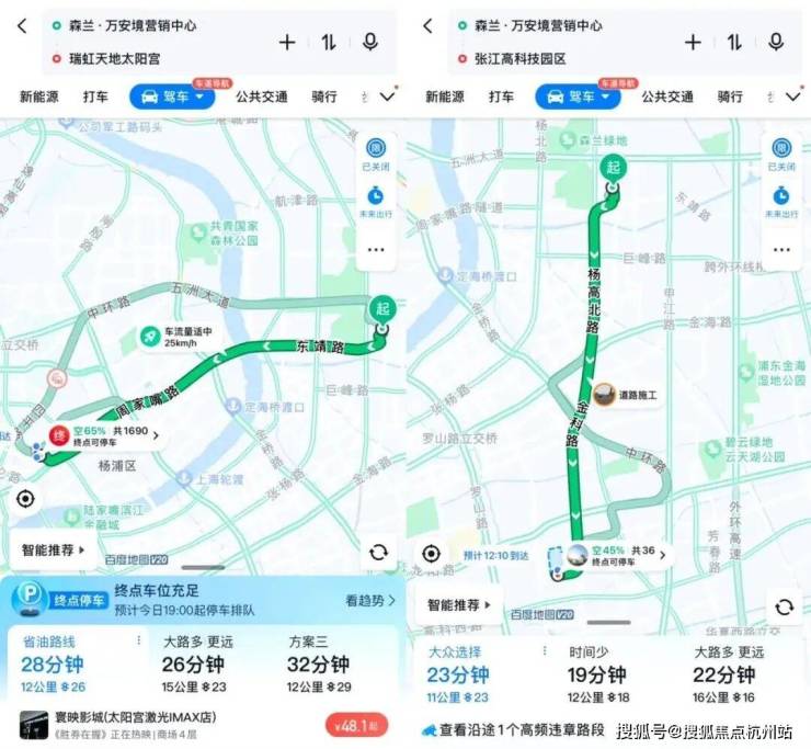 图源网络,仅供参考用百度地图实时做了下导航,从项目出发,无论去往陆家嘴、杨浦滨江CAZ、虹口瑞虹新城和张江高科,产业园区或是核心商圈,都能在舒适的通勤时间内到达!