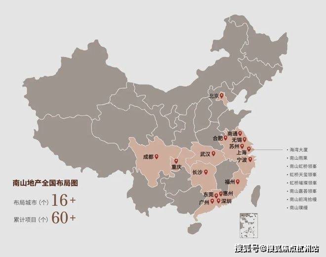 而在房地产行业中,南山地产业务版图已经涉及一线城市,珠江三角洲、长江三角洲等16座城市,累计开发项目超过60个!无论背景实力,还是开发经验,可以说都是当下房地产市场中,最为稳健可靠的T0级房企!