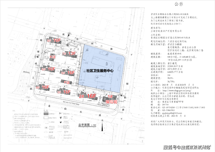 根据项目最新公示的设计方案,项目将建造包括1栋15F住宅,6栋16F住宅,1栋13F住宅,还有一个社区卫生服务中心公公共设施配套。将提供至少410套房源,100%全装修,其中中小户型占比60%。