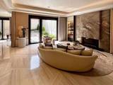 作为上海住宅新规落地后首个、也是对于全域抬板理解最深刻的标杆作品,安澜上海的抬板设计,从不是单纯的技术创新,而是对顶豪生活方式的底层重构。项目整体抬升约4米,首层打造阳光车库,二楼设置入户大堂,首层住宅标高达到约10米,相当于传统住宅4-5层高度,实现了“板上静谧居住,板下丰盛配套”的动静分层。