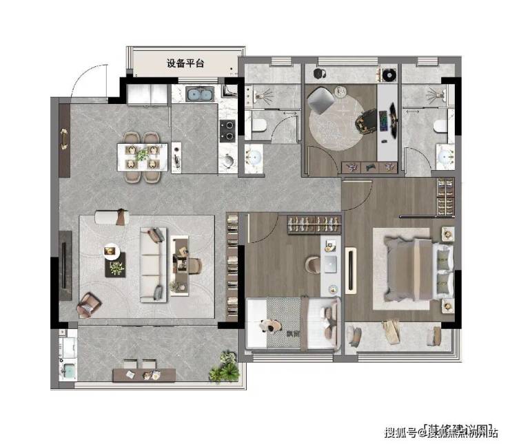 沿袭大都会简约线条,邀请多次荣获GFDA全球未来设计大奖的安道、大师级高定室内设计机构LSD、以及杰出的设计咨询机构之一的致逸公司,以典雅灰调配以金属格栅,打造狮山高颜值住区。