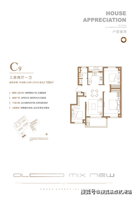 U型厨房的设计、干湿分离的卫浴、套房式的主卧等等。