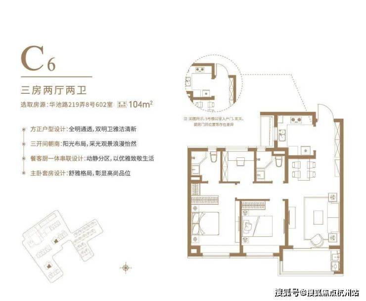 户型设计灵动,目前开放了104㎡3房2厅2卫和103㎡3房2厅2卫样板间,可谓是各有看点: