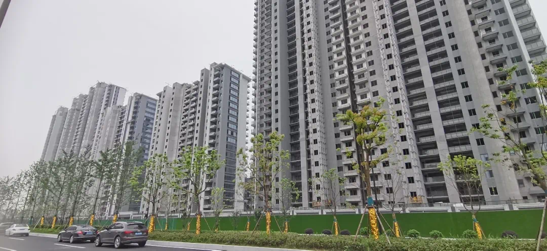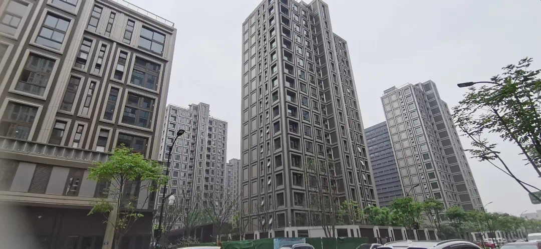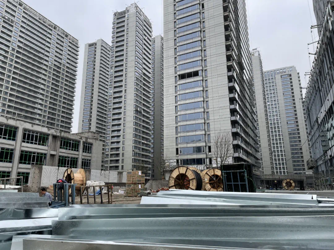 从项目现场来看,一期的外立面已经完成,园区也基本完工,二期的施工节奏较为缓慢,高层立面还在施工当中。