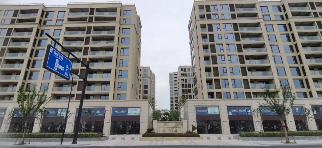 从远处望去,尚悦府还是比较醒目的,外立面以米黄色调为主,搭配大面积玻璃,整体简洁优雅,内部的绿化也已完工,植物种类较为丰富的,外围大概率会有底商。