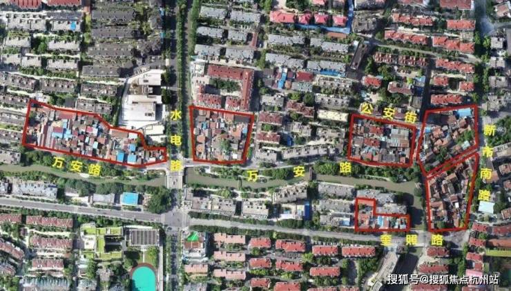 总共7个零散地块,是一个毛地城市更新项目。中间穿插了两条自然河流,一座滨河绿地,多条道路,各自体量都不大,但沿万安路连成一线。