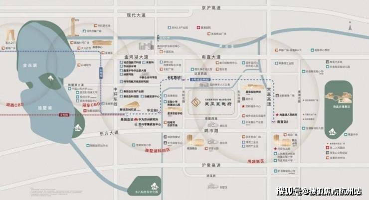 最便捷的交通:3条地铁(约400米轨交6号线、1号线、17号线)、3条高铁线路(通苏嘉甬铁路、苏锡常城际铁路、苏淀沪城际铁路)、2条城市主干道(甪直大道、东方大道)、1个高铁站(高铁苏州东站)