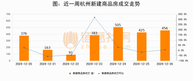 【杭州成交日报】12月26日新房成交456套、二手房262套;涨价房源44套