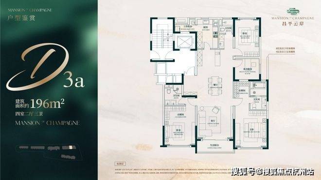 建面约196平的四室两厅三卫,经典飞机户型,动静分区明确,私密性强。主卧次卧采用套房式设计,尺度开阔;三卫设计,十分人性化。豪宅置业的终极户型!