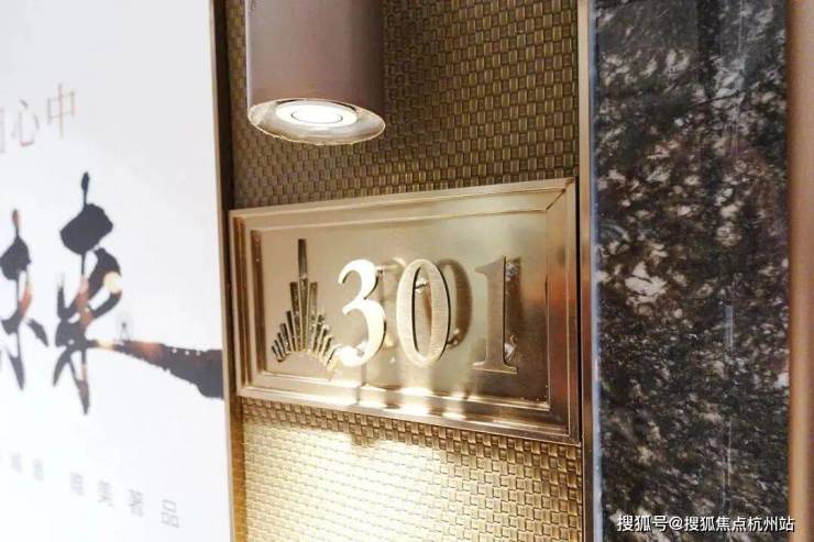 安高这次打造的交付样板间,是从电梯厅开始的。107㎡是一梯两户,电梯间区域,主要以不锈钢条作为通高区域的墙面划分,吊顶带金属弧线。