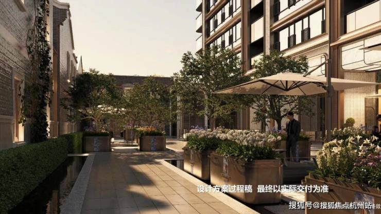 特别设计了八大映象典藏场景景观节点,有百年梧桐下的静谧巷道串联各景观节点,还有充满文化积淀的海派艺术庭院等,营造出精致、典雅的高阶生活氛围。