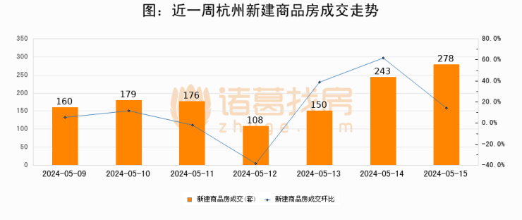 【杭州成交日报】05月15日新房成交278套、二手房254套;涨价房源108套