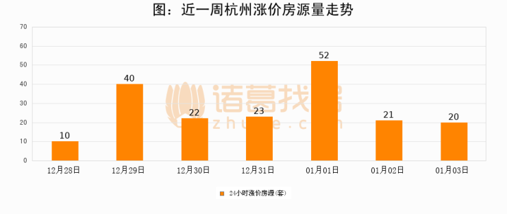 根据诸葛找房数据显示,杭州24小时涨价房源量为20套,较01月02日减少1套,环比下降4.8%。与此同时,涨价房源占比小幅回落,对于购房者来说是一个入市窗口期,购房者可抓住时机入市。