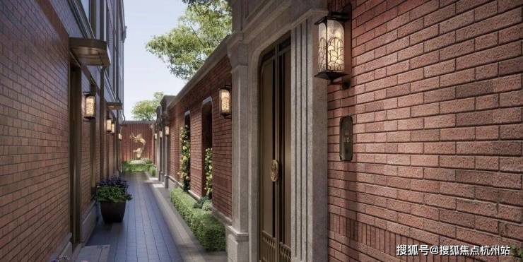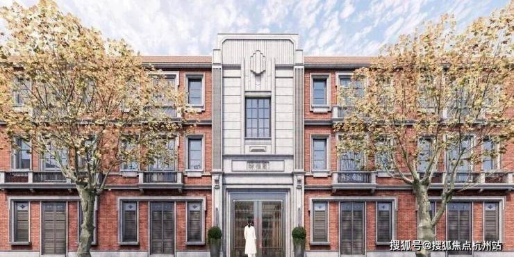 一幕为海派门仪,也是项目的主入口,约10.7米阔绰门庭尺度的海派里弄门楼界面,极致的对称仪式布局,延续建筑红砖肌理,甄选天然红洞石,还原那一抹隽永而厚重的经典色彩,既有大地般的沉稳,又透出低调的奢华感。