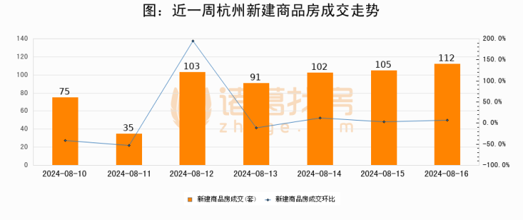 【杭州成交日报】08月16日新房成交112套、二手房186套;涨价房源69套