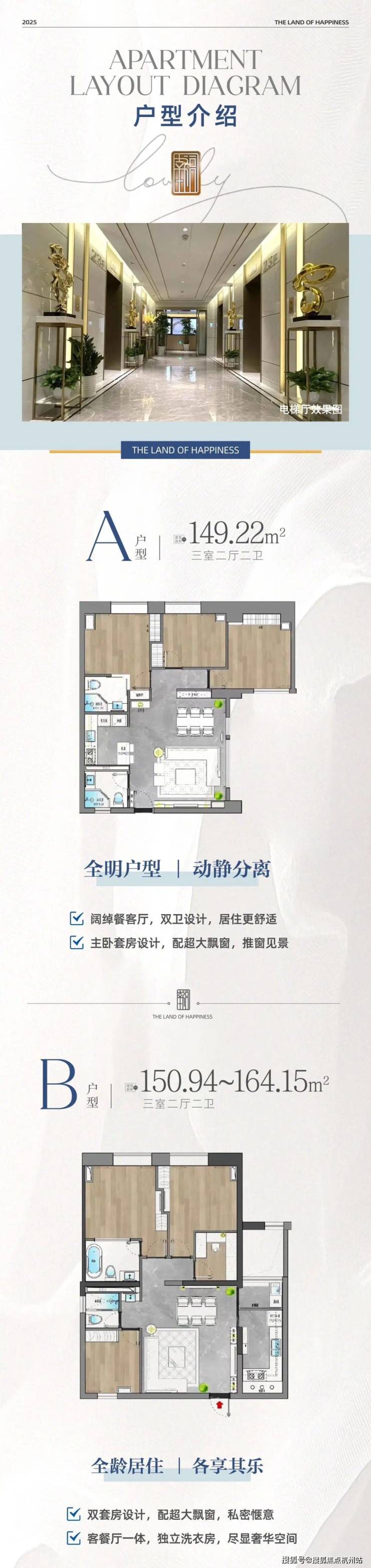 149㎡/164.15㎡大三房:阔绰尺度,主卧套房设计,多飘窗,景观视野佳,适合改善家庭,一步到位内环改善。