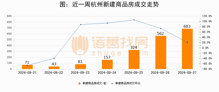 【杭州成交日报】09月27日新房成交683套、二手房186套;涨价房源466套