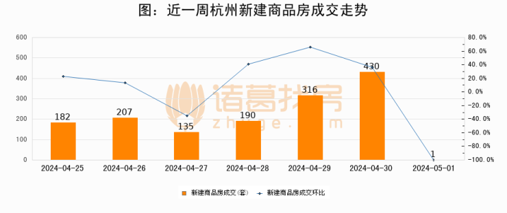 【杭州成交日报】05月01日新房成交1套;涨价房源59套
