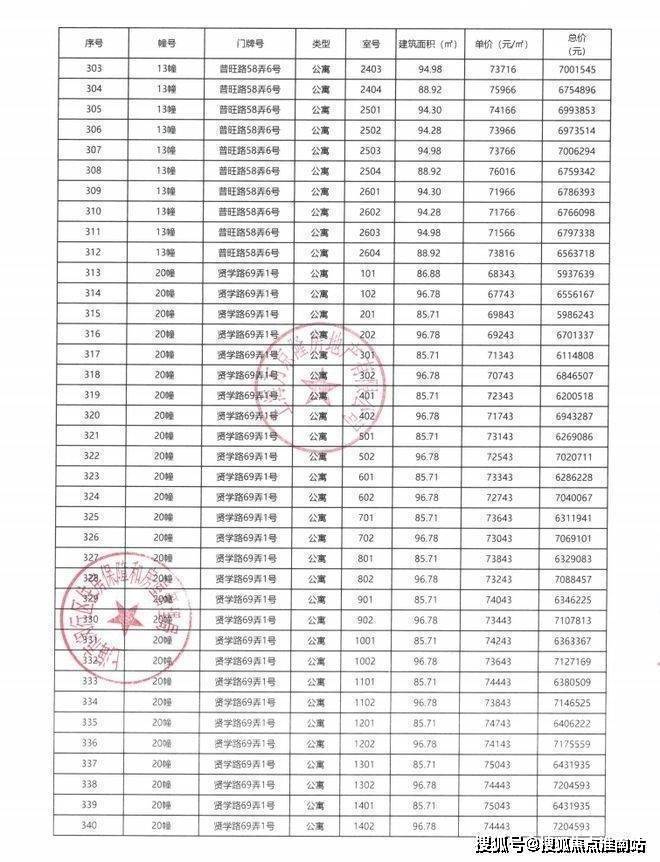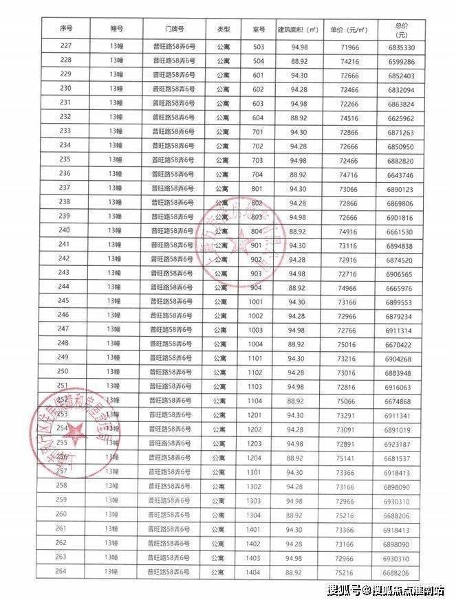 一房一价表