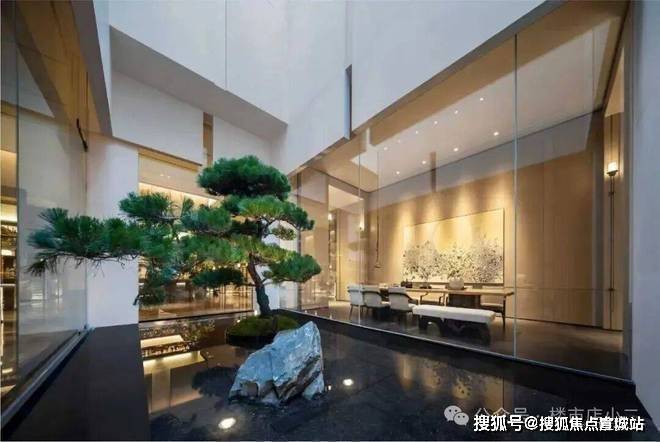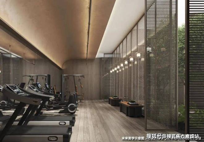 一进院:社区门口的 6米宽瀑布景墙+落石+大乔组合,构筑起一道 天然噪音屏障,进入瞬时隔离城市喧嚣!二进院:经过廊道,现代 东方照明系统与景墙的组合,在光影变幻间呈现“移步换景”的归家仪式感!三进院:来到社区中央, 18米宽的中心景观轴,搭配景观水池与疏密乔木,形成极简却又不失典雅气质的主景观花园!四进院:绿荫环绕的林下空间,为邻里交流提供惬意轻松的绿意场所!五进院:密植小乔合围的私密通道,配合定制石材院门,完成从公共到私域的过渡!1000平下沉式会所,安排了诸如健身房,私宴厅,四点半学堂,洽谈区等诸多功能,方便业主在这里安排社交活动。