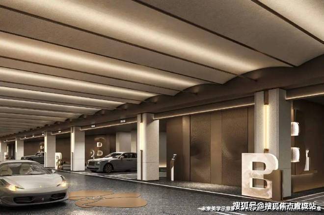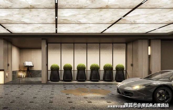 精装车库,金茂这次也拿出了流光穹顶的天幕和定制化的归家门头,甚至地面都采用了石材来增加奢华感。
