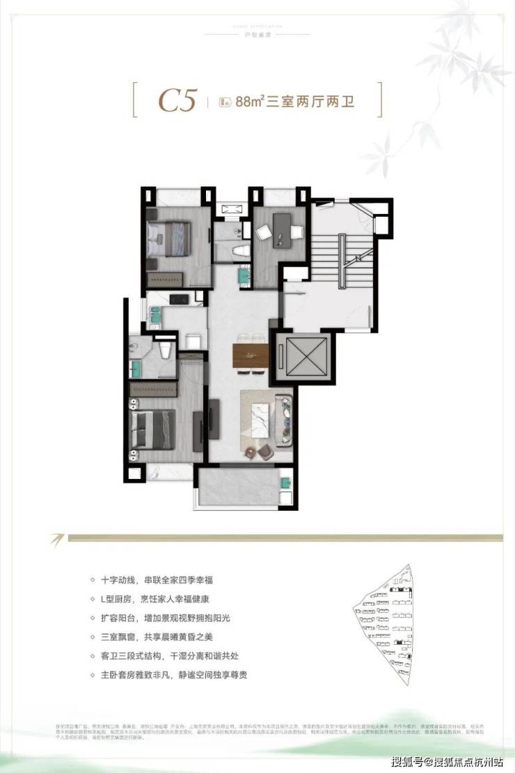 C5户型建面约88㎡3房2厅2卫: