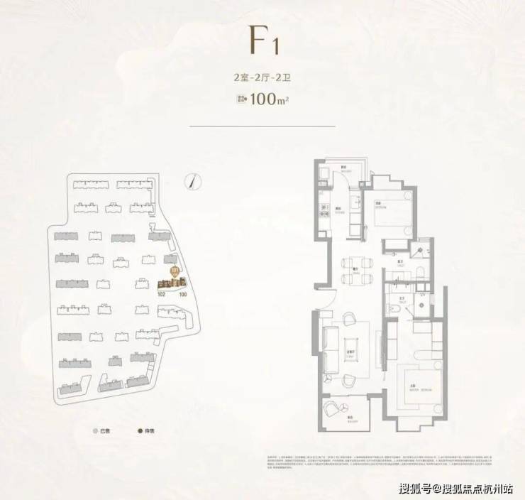 建面约100㎡2房2卫,总价约880起,单身都市菁英、年轻家庭上车首选!