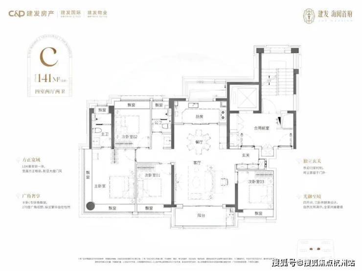建面约141㎡4房2厅2卫,这是一种超越使用功能之上,更高层次的改善。