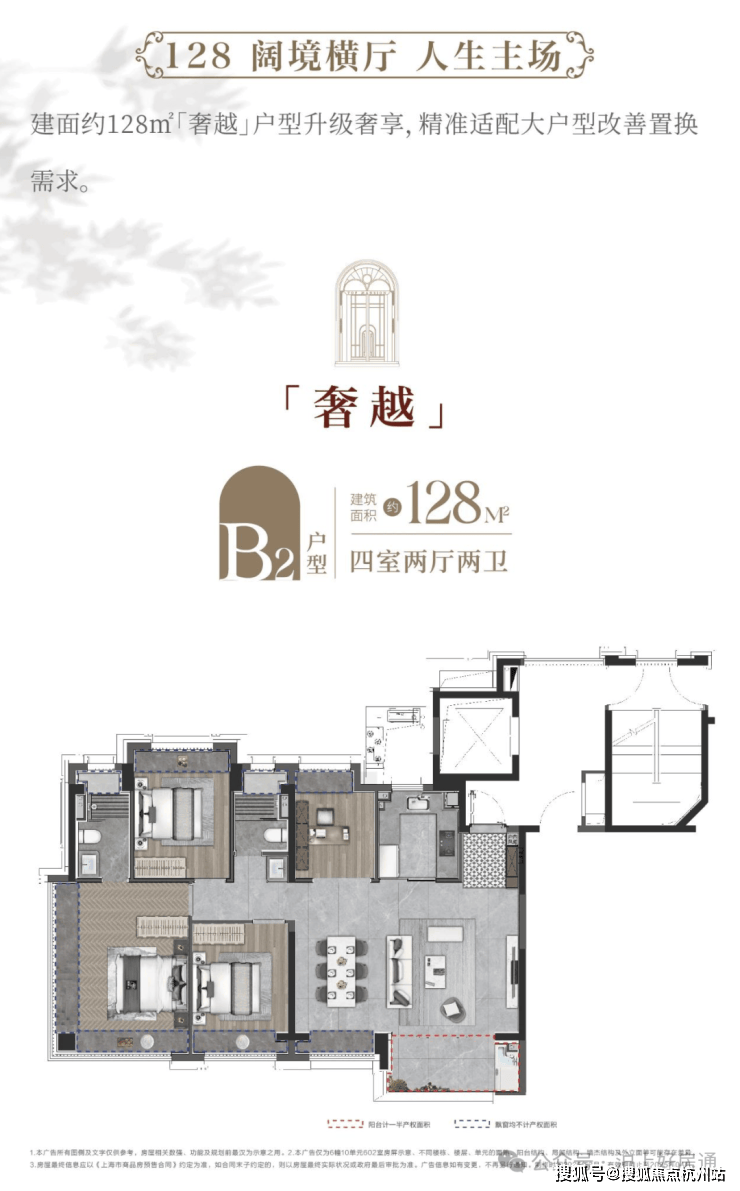 建面约128㎡直接进阶4房,功能性拉满,适配当下越来越多的二胎或三代同堂家庭。