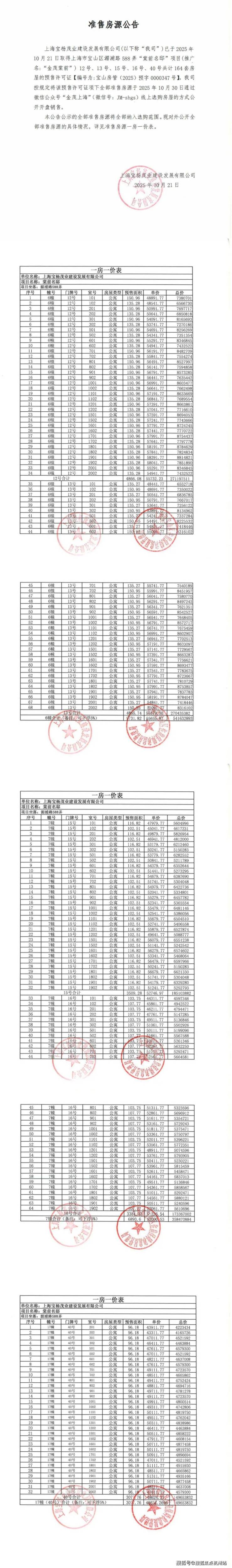 2024年12月30日,金茂&宝冶&杨行城建于2024年八批次土拍中以31.16亿竞得宝山站商住组合地块( 宝山区BSP0-0801单元13A-01、02aA-04地块),楼面价9058元/㎡,住宅中小套型占比50%,集采价2500元/㎡。