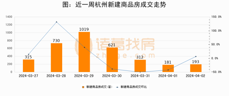 【杭州成交日报】04月02日新房成交193套、二手房274套;涨价房源95套