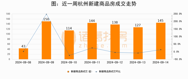 【杭州成交日报】09月14日新房成交145套、二手房202套;涨价房源39套