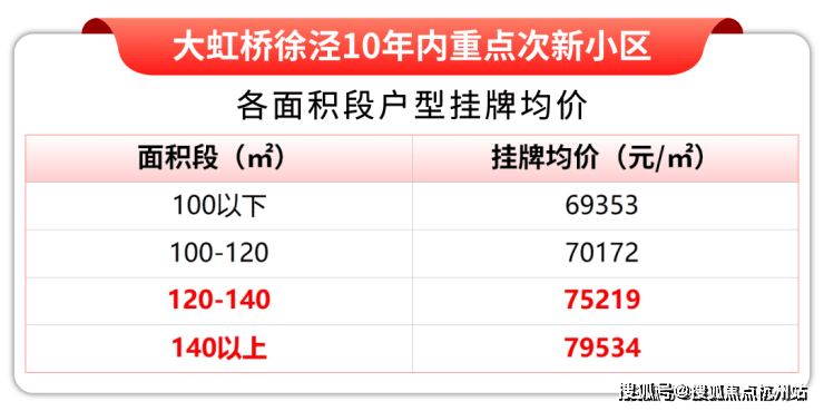 据链家网最新挂牌数据显示,目前徐泾10年内次新重点小区100㎡以下户型挂牌均价已经跌破7万/㎡。但140㎡以上的大户型却仍然有近8万/㎡的挂牌均价,溢价小户型近15%!