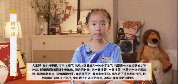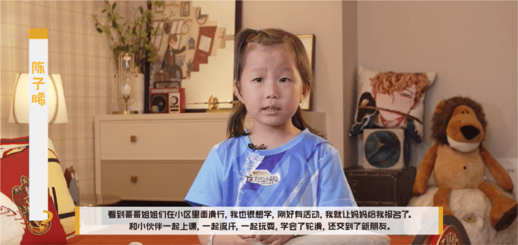 正如周柱教练所说,轮滑不仅能够提升孩子身体的平衡性与协调性,还能磨炼他们的心性,培养他们不怕困难、无惧挫折、坚持到底的勇气与毅力。除此之外,运动也是孩子重要的社交方式之一,能够提升孩子的表达能力与交往能力。在闭营仪式上,可爱的酷盖少年们也接受了主持人的采访。讲述了自己参加酷盖少年计划的体验: