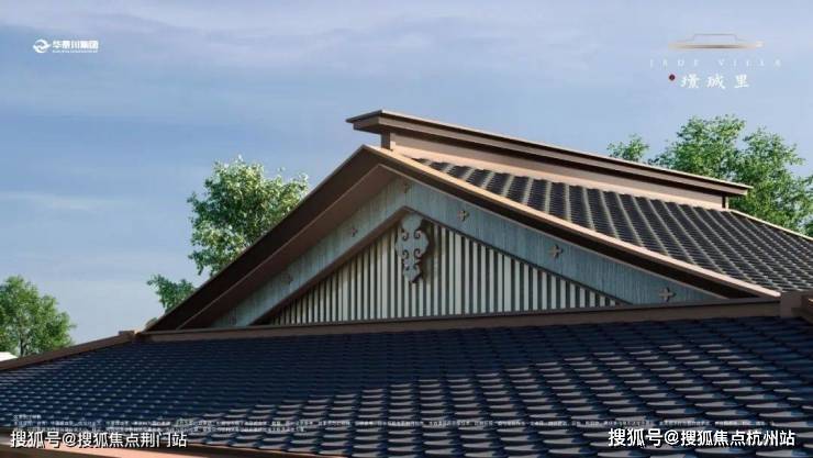 叠墅大悬檐,合院三重飞檐,庄严恢弘,还能提升采光通透性;斗拱,在璟珹里成为灵动精致的艺术符号,提升建筑稳定性;坡屋顶,以极简手法融入院墅,增加房屋的排水、隔热保温,提升居住舒适性。
