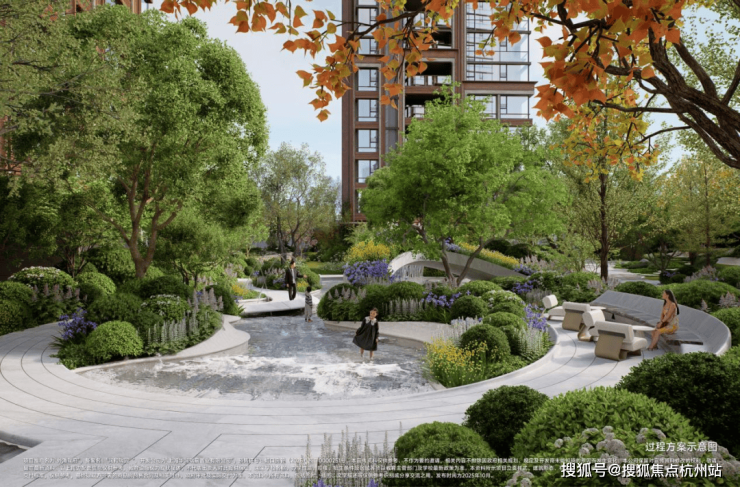 社区景观上,突破市区项目常见的「兵列树阵式」布局,通过建筑楼体的精密偏转,形成罕见的围合式社区形态。
